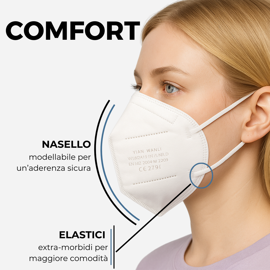 These FFP2 respirator masks filter at least 94% of airborne particles, including pollen, dust, and bacteria, helping safeguard against everyday exposure. Ideal for workplaces, public spaces, and personal use.
