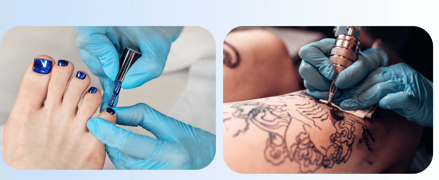Tough, comfortable, and ready for the job. These premium nitrile gloves deliver reliable barrier protection for healthcare, beauty, tattoo, food handling, and light industrial tasks. They’re food-safe, latex- and powder-free, hypoallergenic, and free from DEHP/DOP, ideal for sensitive skin and strict hygiene standards. CE-certified and tested to EN 455, EN 16523, and EN ISO 374 for protection against hazardous chemicals and micro-organisms. Non-sterile single-use gloves with a snug fit for all-day comfort and dexterity.